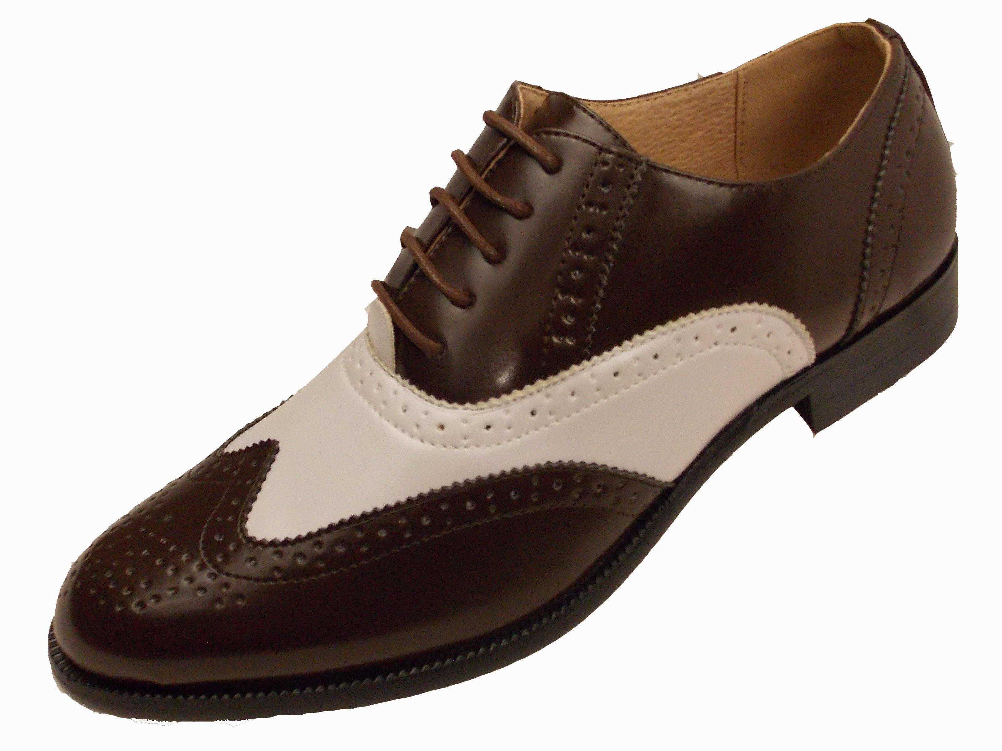 Majestic Men's Wingtip Two Tone Oxford Brown and White Spectator Dress Shoes